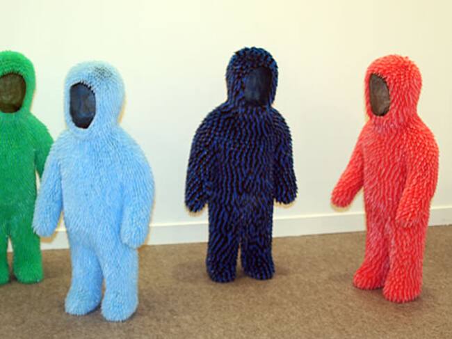 Imagen de pequeñas estatuillas con forma de teletubbie recubiertas de escamas de plástico de colores(A.O. GORIAINOFF)