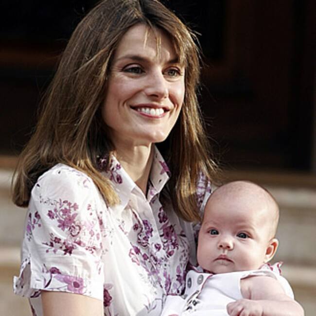 POSANDO. La princesa Letizia sostiene a la pequeña Sofía en la sesión para los fotógrafos en el palacio de Marivent (Palma).(Reuters)