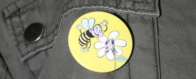 La nota de prensa va va acompañada de una chapa con la viñeta que ilustraba el número siguiente a la polémica publicación, en la que se veía al príncipe de Asturias con el cuerpo de una abeja y la princesa Letizia en forma de flor bajo el título "Rectificamos: esta es la portada que queríamos publicar".
