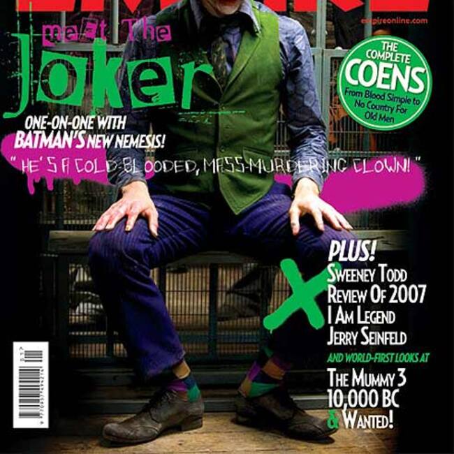 La fotografía del villano, que se enfrentará al hombre murciélago en The Dark Knight y que interpreta el australiano Heath Ledger, muestra un Joker ataviado con pantalón y camisa morados, aderezado por un chaleco verde, el pelo, alborotado, del mismo color, y con la cara completamente maquillada. Esta imagen fue publicada en varias páginas de internet el martes, por lo que la revista decidió adelantar la exclusiva y hacer pública la fotografía.