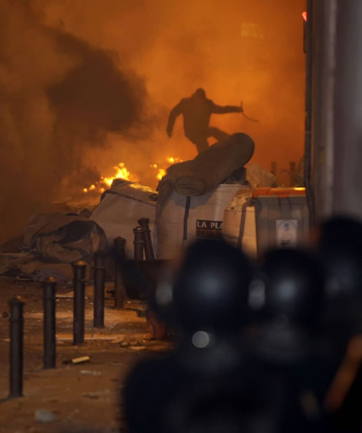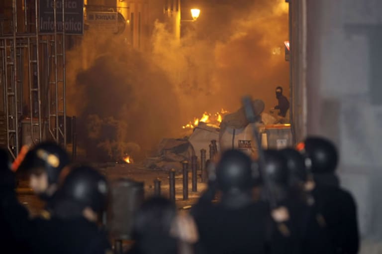 • Enfrentamiento entre antifascistas y policía con contenedores incendiados, barricas, pelotas de goma y gases lacrimógenos en Madrid