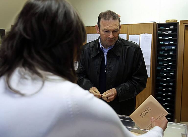 El lehendakari vasco, Juan José Ibarretxe, vota esta mañana.