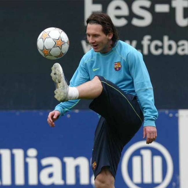 Messi, durante un entrenamiento con el Barcelona