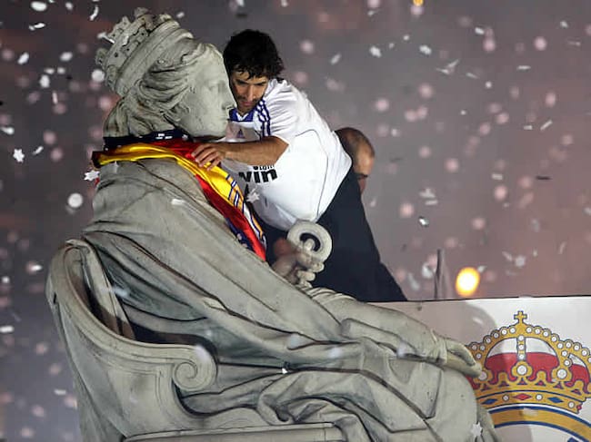 Raúl festeja el título de Liga en la Cibeles