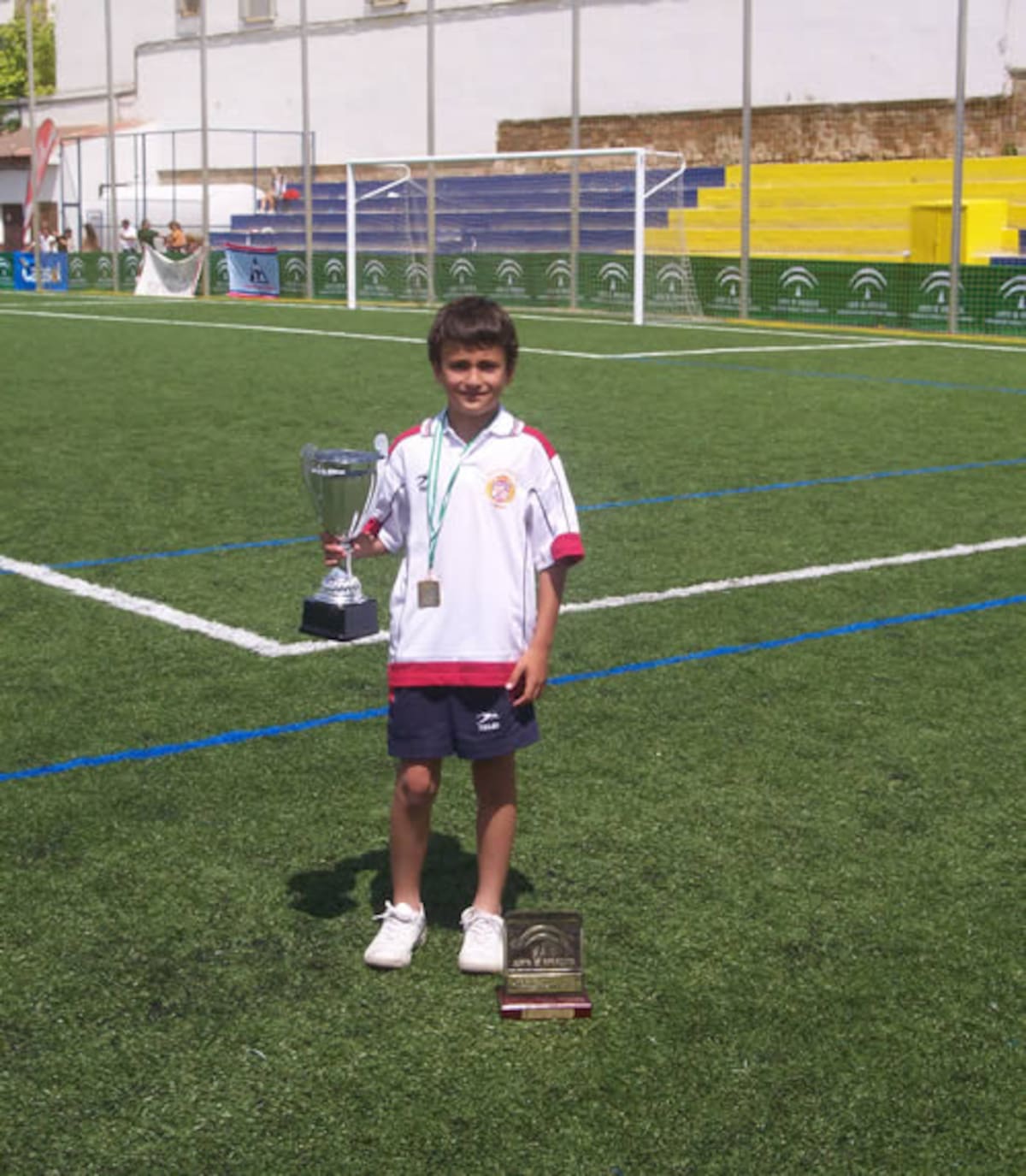 Se llama Pedro, es un mediocentro y tiene 11 años. Nos envía su foto con el trofeo obtenido en 2007 jugando para el Oriente (en Almería) donde obtuvo el tercer puesto del Campeonato de Andalucía de Benjamines