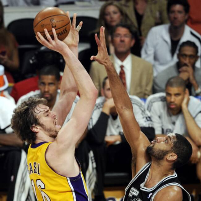No fue el mejor partido de Pau Gasol en ataque (10 puntos y siete rebotes), pero el marcaje que efectuó a Tim Duncan, el líder de los tejanos, resultó impagable. A pesar de ello, la torre de los Spurs acabó con 12 tantos y 16 rebotes.