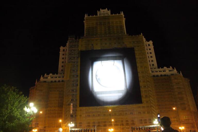 El edificio de Telefónica tuvo también un montaje en su fachada