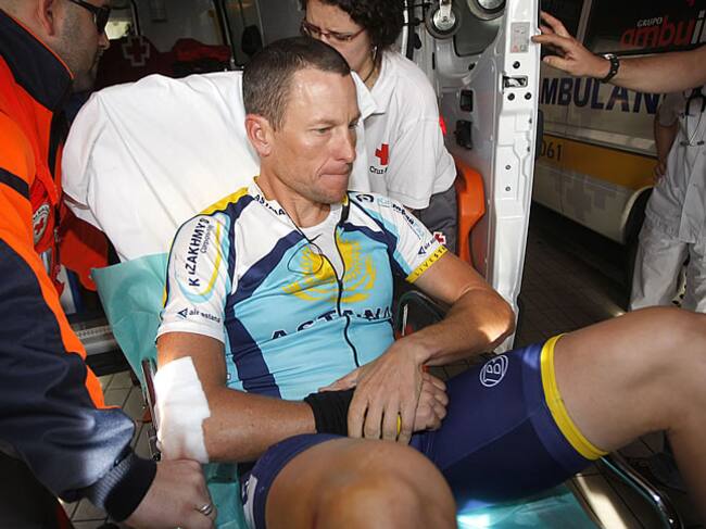 Lance Arsmstrong tras sufrir la caída en la primera etapa de la Vuelta a Castilla y León(Reuters)