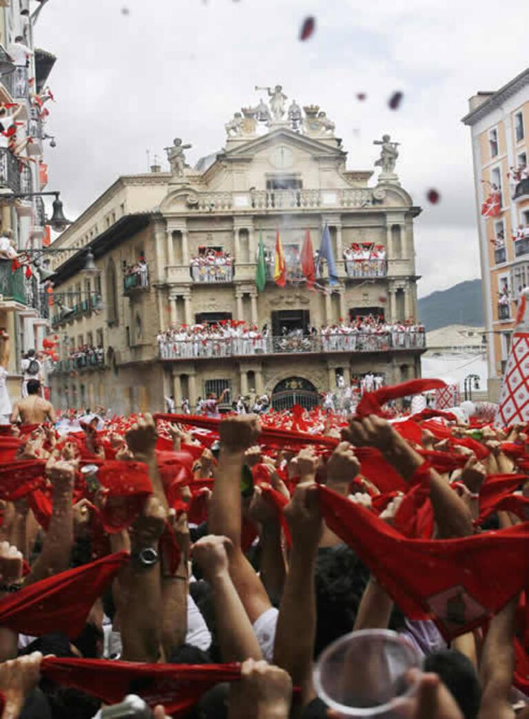 Los sanfermines arrancaron este lunes con tradicional 'chupinazo', el cohete que marca el inicio de los festejos y que fue lanzado por la concejal de PSN en Pamplona, Maite Esporrín