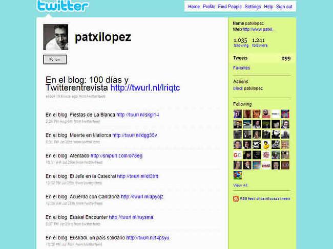 El lehendakari, Patxi López, cumple 100 días como lehendakari. Para celebrarlo, un encuentro muy especial con los ciudadanos. El jefe del ejecutivo vasco se ha sometido a las preguntas que los ciudadanos le han enviado a través de Twitter, donde tiene una cuenta con más de mil seguidores. A la iniciativa tecnológica se ha sumado también la tradicional rueda de prensa que se ha celebrado una hora antes. El anuncio ha sido acogido de forma desigual en la red. Mientras algunos comentarios reconocían a López el mérito de ser uno de los primeros gobernantes en aceptar un reto de este tipo; otros le atacan por cuestiones políticas.