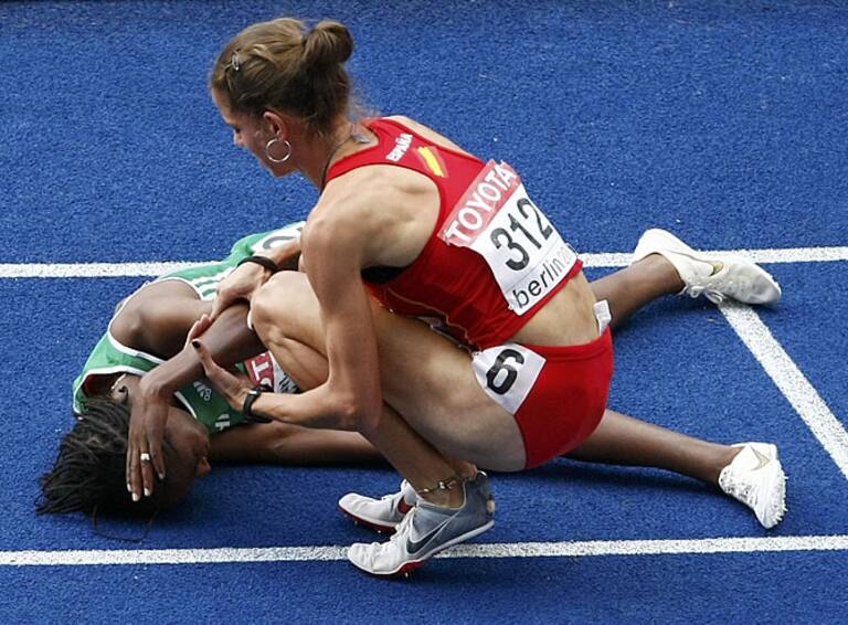• La atleta española tropezó con Gelete Burke cuando quedaban 200 metros y al final se interesó por cómo se encontraba la etíope