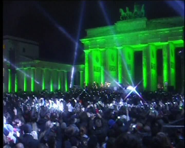 U2 ofrece un emotivo concierto en la Puerta de Brandenburgo