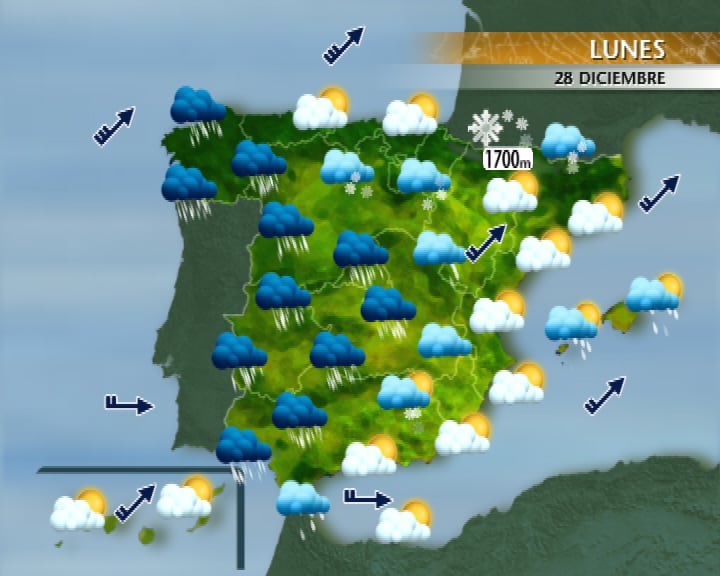 Siguen las lluvias en la península en el inicio de la semana