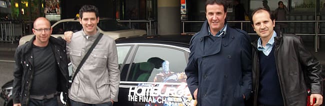 Jesús Gallego, Heri Frade, José Ramón de la Morena y Carlos Bustillo, a su llegada a Hamburgo
