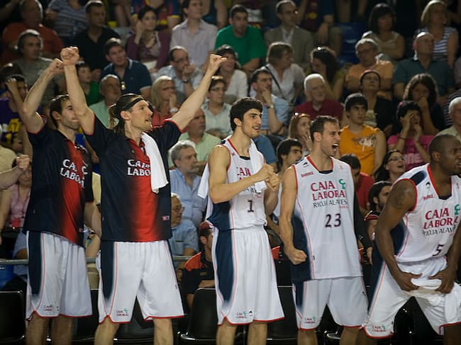 El banquillo del Caja Laboral celebra la victoria
