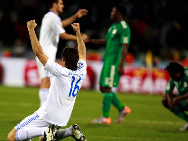 La selección de Grecia hizo hoy historia anotando su primer gol mundialista en el triunfo ante Nigeria (2-1), resultado que deja a ambas todavía con esperanzas de estar en los octavos de final.