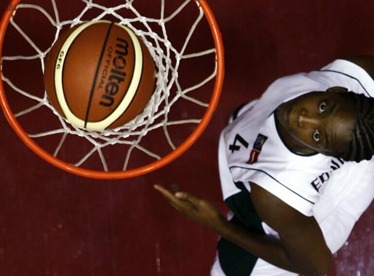 Simone Edwards, de Jamaica, anota un tanto ante Puerto Rico durante el FIB'A Americas 2010 Centrobasket Championship