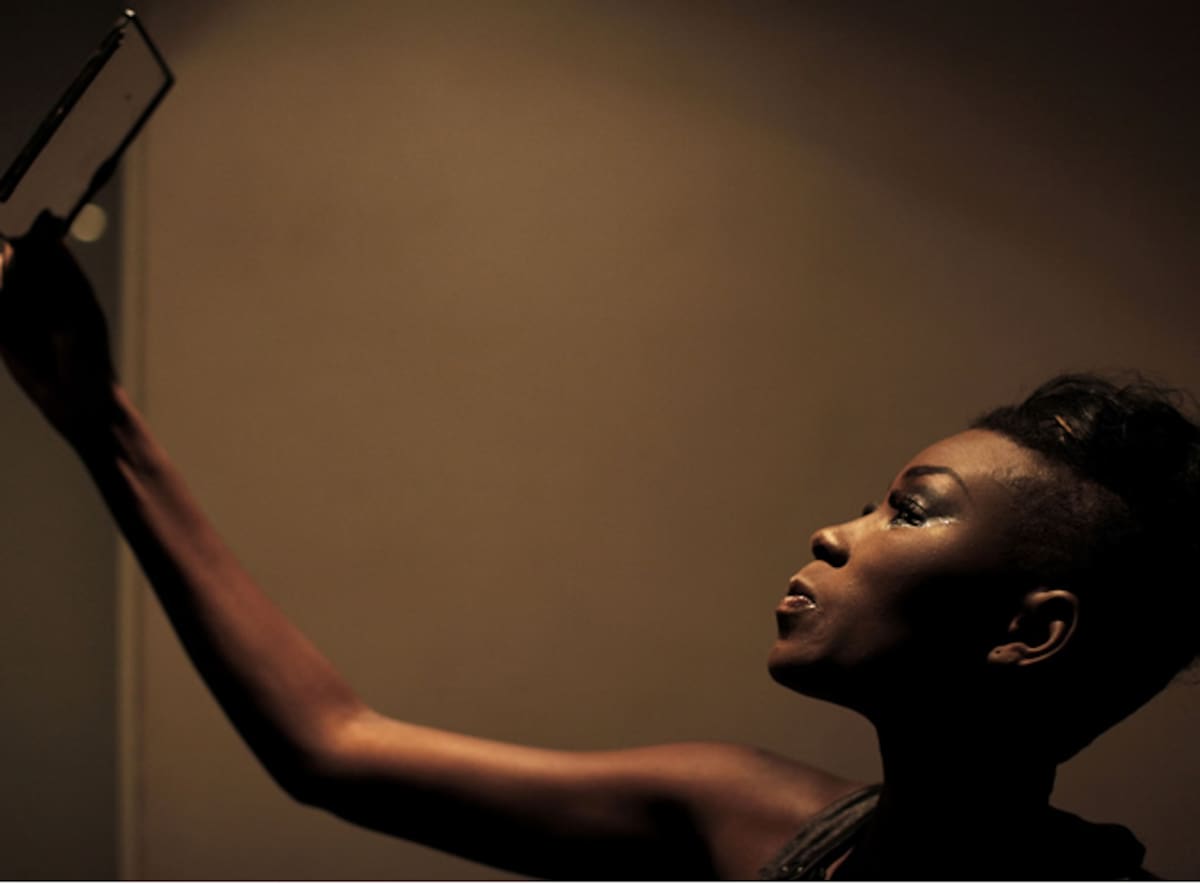 Una modelo retoca su maquillaje antes del inicio de la Dakar Fashion Week