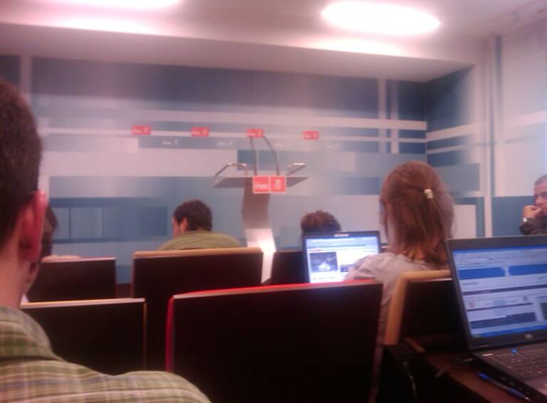 Los periodistas esperan en la sede de Callao el cierre de las urnas y los resultados de la votación