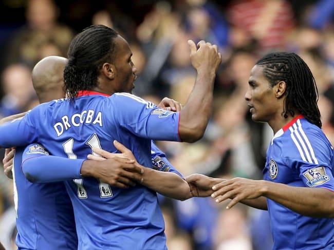Malouda celebra su gol con Anelka y Drogba(EFE)