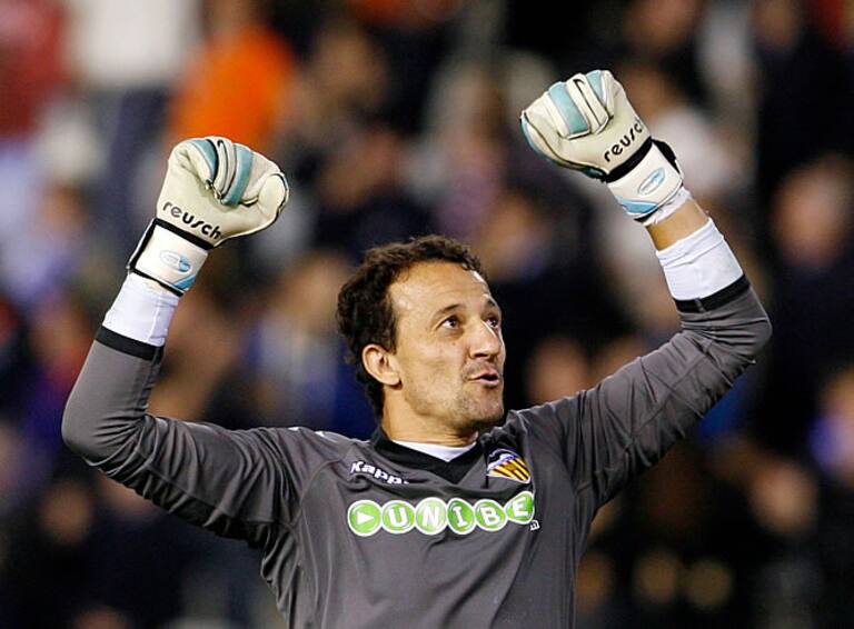 El portero del Valencia César Sánchez celebraba la victoria ante el Rangers escocés