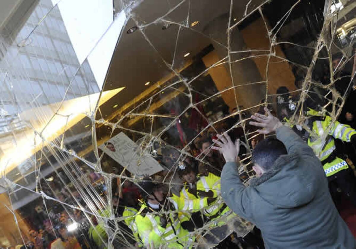 Los estudiantes rompen cristales de la sede en protesta por el aumento del coste de las matrículas universitarias.