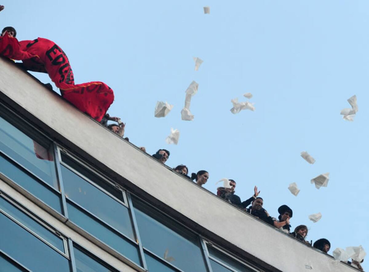 Los manifestantes han llegado hasta el tejado de la sede del partido consevador