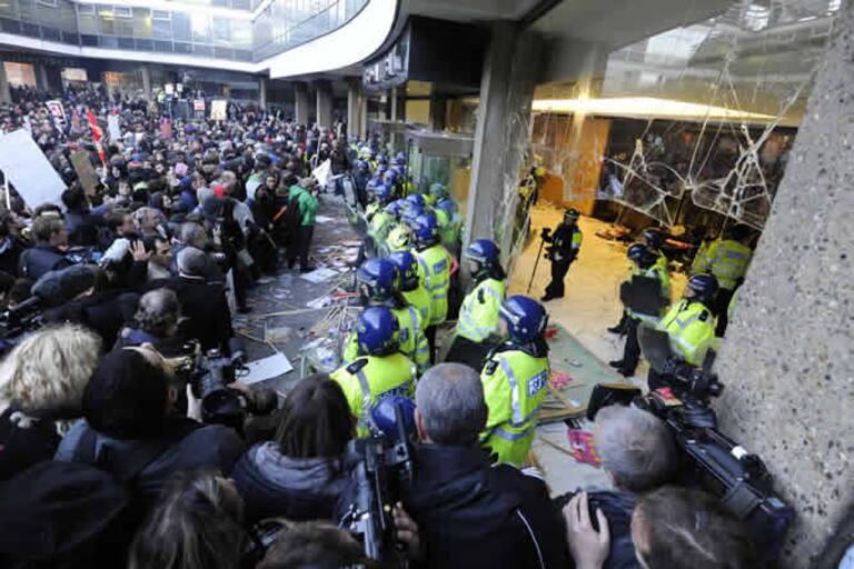 La sede del Partido Conservador británico tomada por una protesta estudiantil.