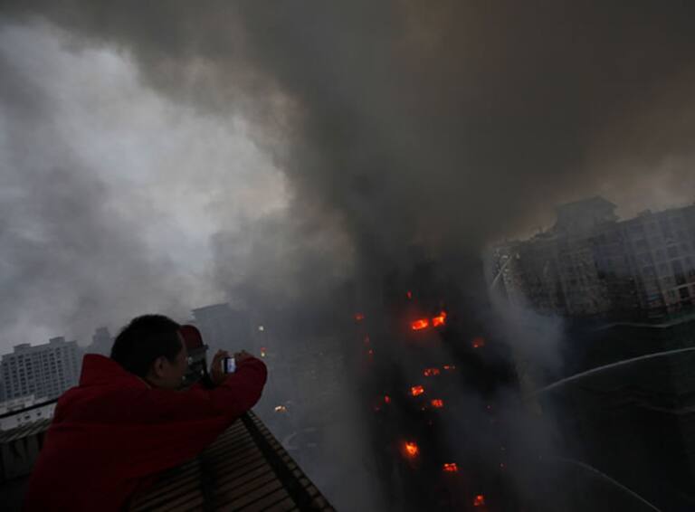 Incontrolable el incendio en un edificio de 28 pisos de Shanghai