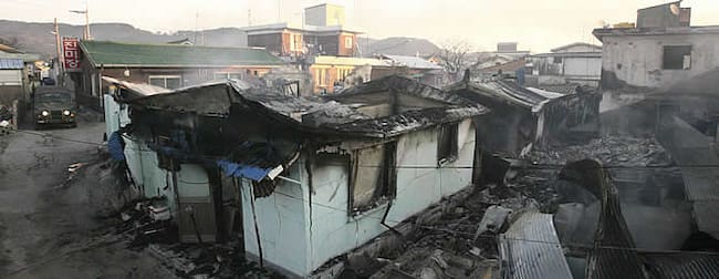 Casas destruidas tras el ataque de Corea del Norte en la isla de Yeonpyeong(REUTERS/Ongjin County)