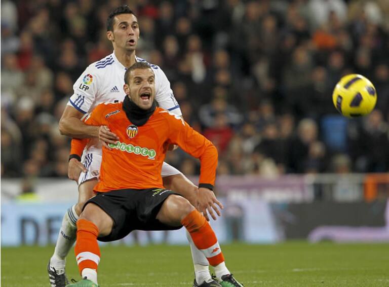 Arbeloa pelea con el delantero del Valencia Roberto Soldado