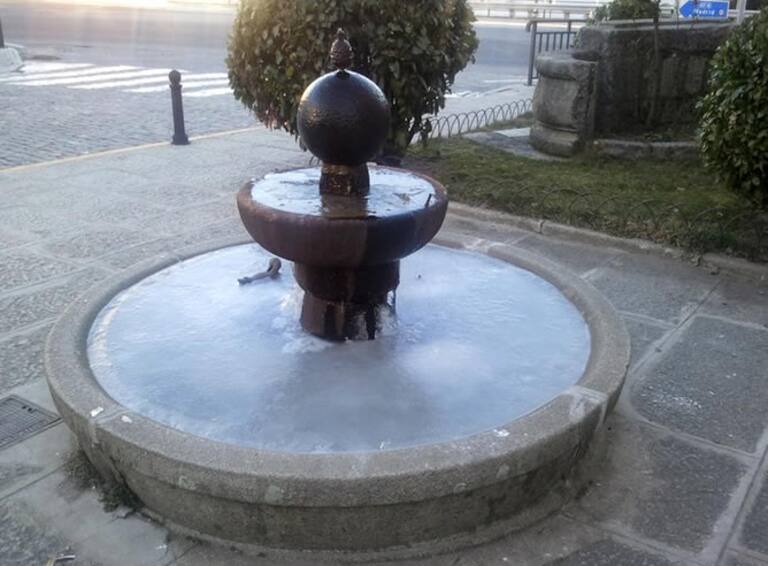 La diosa Cibeles y sus leones no han podido escapar de las bajas temperaturas y heladas registradas en Madrid y sus alrededores, al igual que en otros puntos de la geografía. El municipio serrano de Buitrago de Lozoya ha llegado a 9,8 grados bajo cero, la