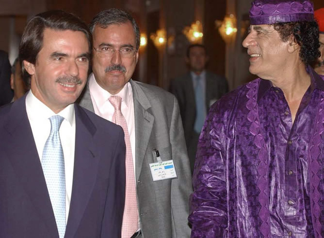 Foto 1 de 19El presidente español José María Aznar a su llegada al hotel de Trípoli donde se reunió con su colega libio, Muamar El Gadafi, para asistir a la cena que en ese mismo lugar ofreció Gadafi al presidente del Gobierno español, quien visitó Libia siendo el p