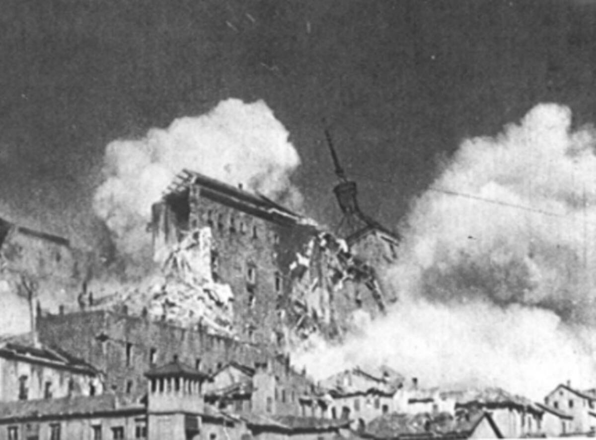 • Asedio al Alcázar de Toledo (Guerra Civil): El Alcázar, bombardeado por la aviación republicana