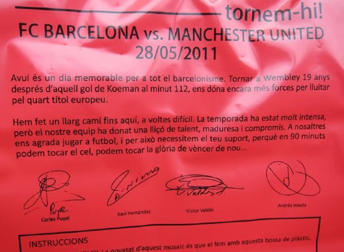Los seguidores del Barça encontrarán en cada asiento una carta firmada por los capitanes, recordando Wembley 92