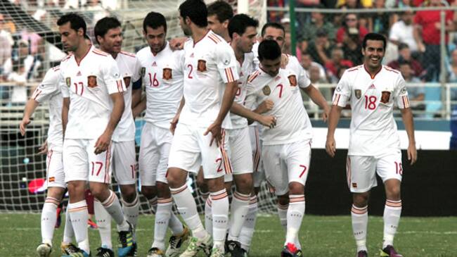 Hizo falta muy poco para que España se adelantara en el marcador. David Villa, el máximo goleador de la 'Roja', marcó de falta directa a los cinco minutos. Un lanzamiento que besó la red con la ayuda del meta local, Renny Vega, que se empeñó en facilitar la empresa a la campeona de Europa en 2008.