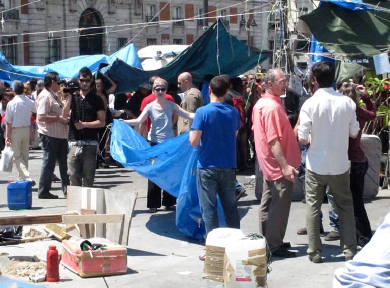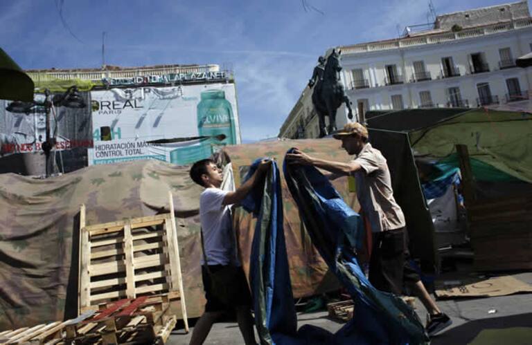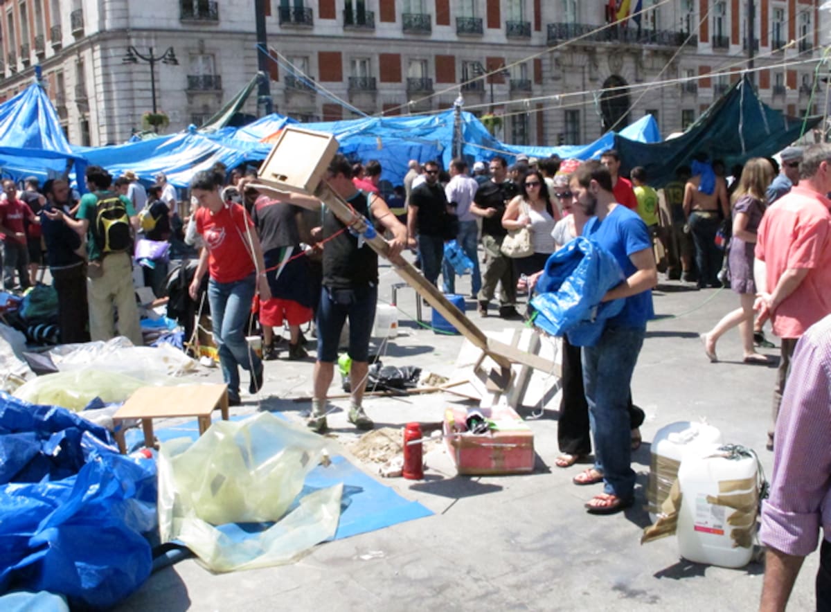Este domingo, los acampados en la Puerta del Sol dejarán de dormir en la madrileña plaza
