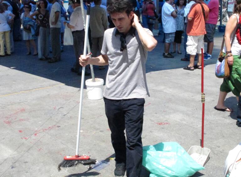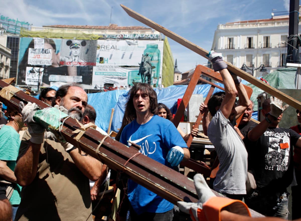 Los indignados del movimiento del 15-M están en plena operación limpieza de la Puerta del Sol