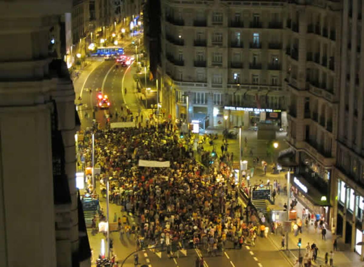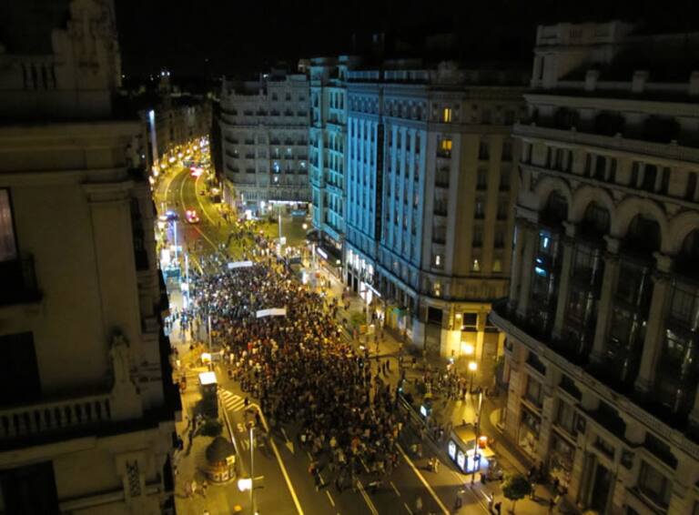 Los 'indignados' cortan el tráfico en la Gran Vía
