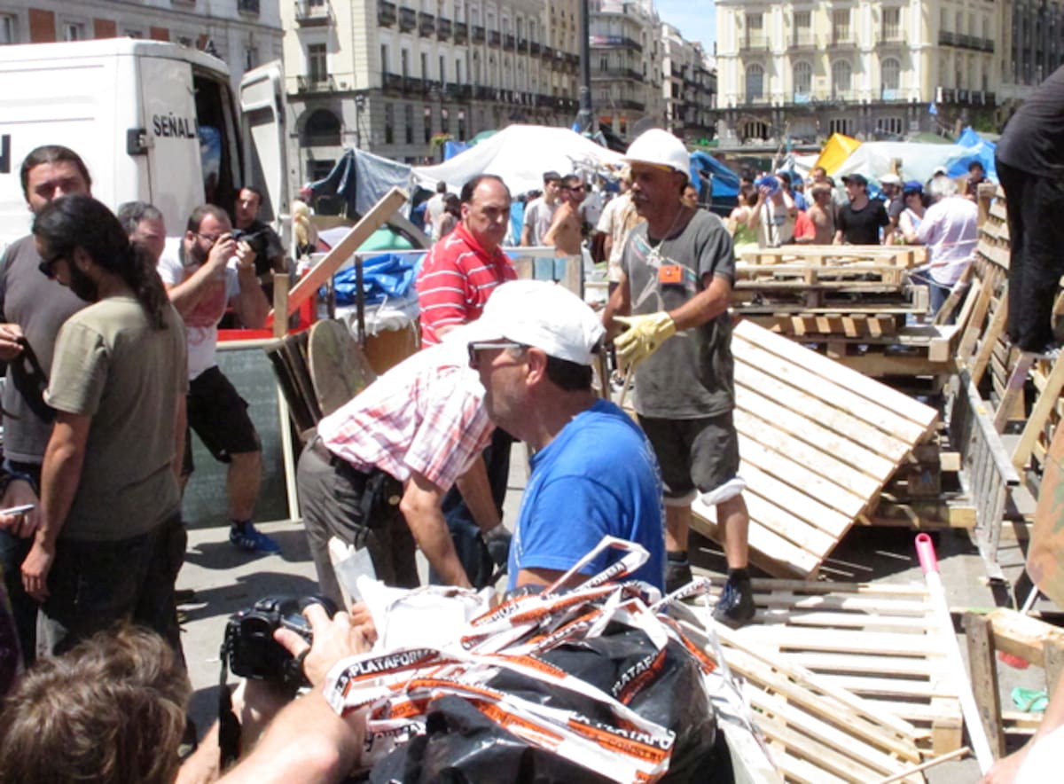Los 'indignados' retiran carteles y pancartas de la Puerta del Sol
