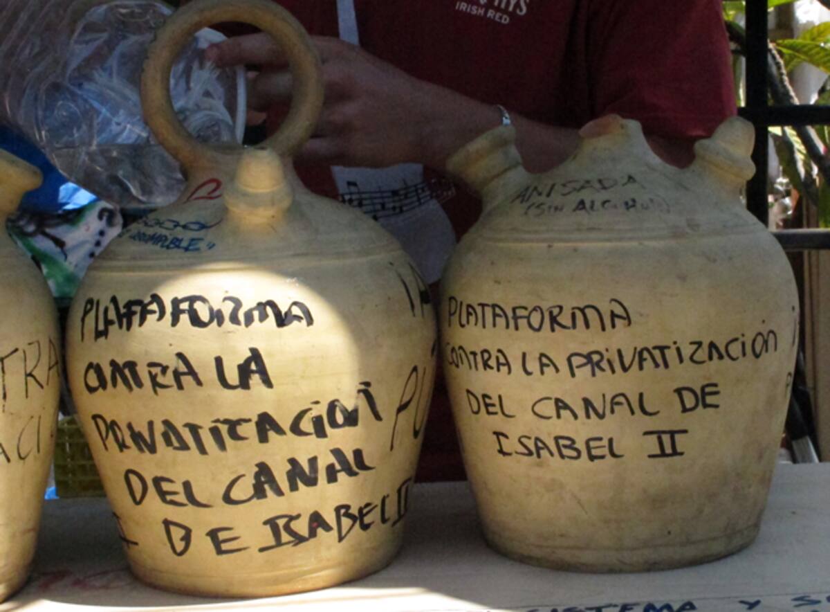 Comienzan a desmontar el campamento de Sol bajo el lema ''No nos vamos, nos expandimos'', un grupo de 'indignados' ofrecen agua y protestan contra la privatización del Canal de Isabel II
