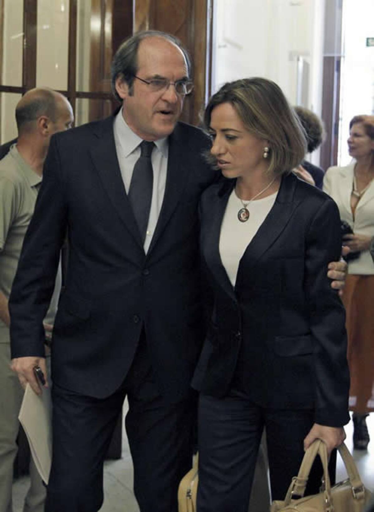 El ministro de Educación, Ángel Gabilondo, y la ministra de Defensa, Carme Chacón, a su llegada a la sesión de tarde de la primera jornada del debate sobre el estado de la nación
