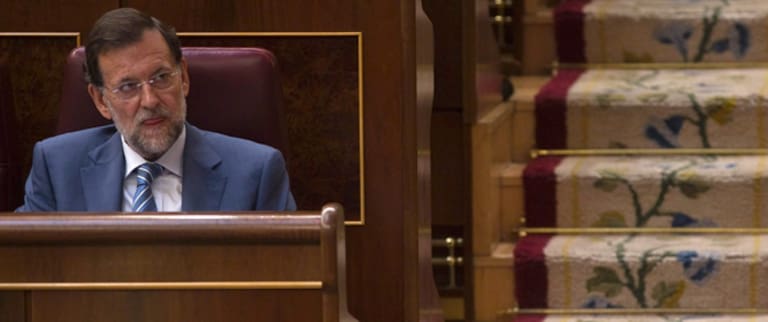 El líder del PP, Mariano Rajoy, durante su intervención en la sesión de tarde de la primera jornada del debate sobre el estado de la nación