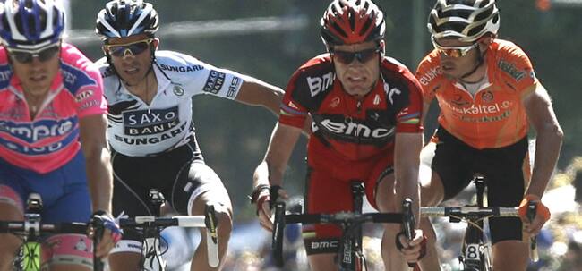 Ambos encontraron las fuerzas que no tuvieron 24 horas antes para intentar abrir brecha, en una nueva demostración de la ambición de los dos ciclistas españoles. Por detrás, los hermanos Schleck y Evans tuvieron la ventaja de ser un grupo más numeroso, algo que no logró Voeckler, que se llevó un susto en el descenso y que cedió en la meta 27 segundos, al igual que el italiano Ivan Basso (Liquigas).