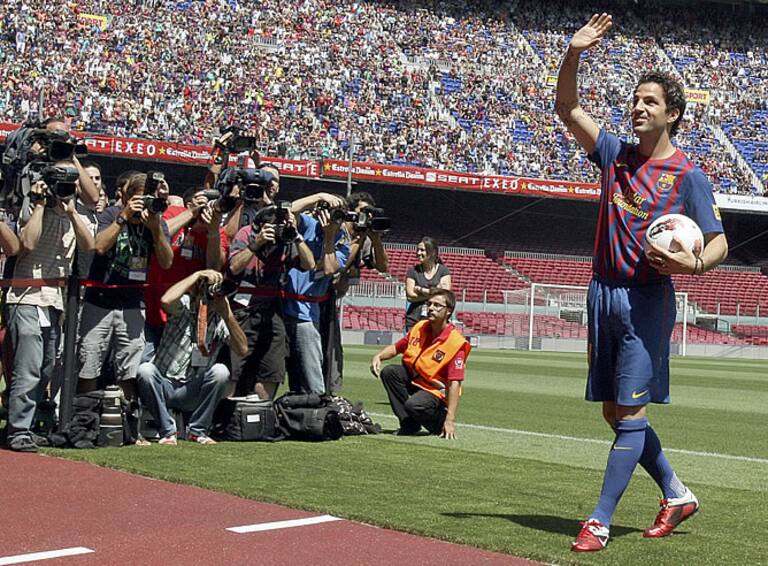 Cesc saluda a los 35.000 culés que han acudido al Camp Nou a darle la bienvenida