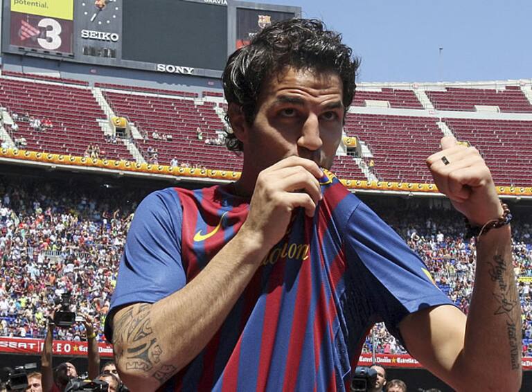 Cesc besa el escudo del Barça