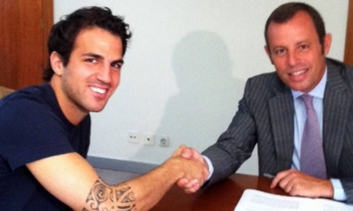Cesc Fàbregas y Sandro Rosell sellan el acuerdo. foto: fcbarcelona.cat