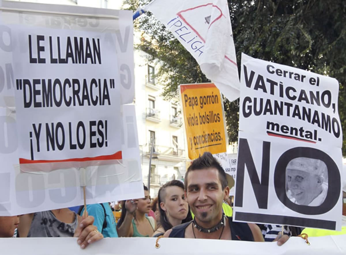 Manifestantes de Europa Laica han coincidio con los peregrinos de la JMJ