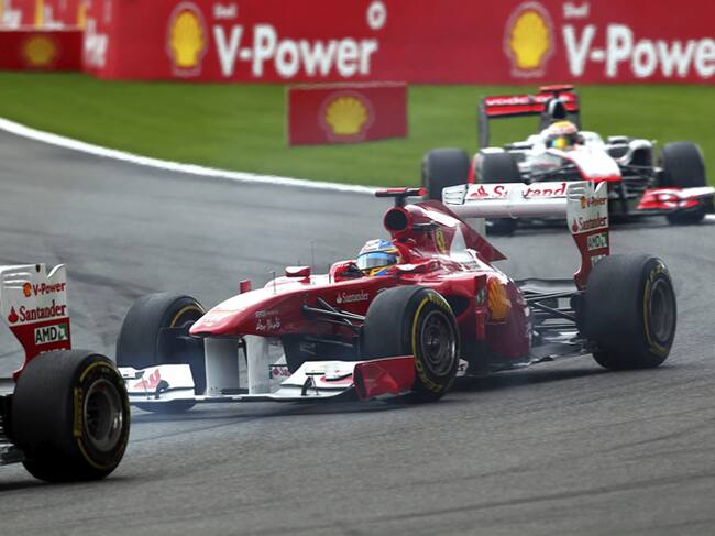 El piloto español de Ferrari acelera su monoplaza en el circuito belga de Spa-Francorchamps.(EFE / VALDRIN)