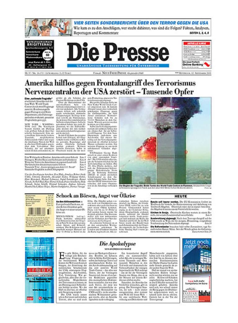 El 11-S, en los periódicos